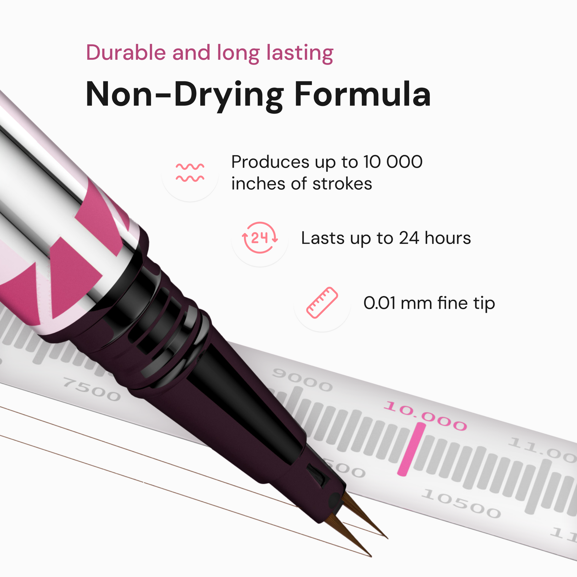 No flaking, no fading. Lasts up to 24 hours and each pen can produce up to 10 000 inches of strokes.