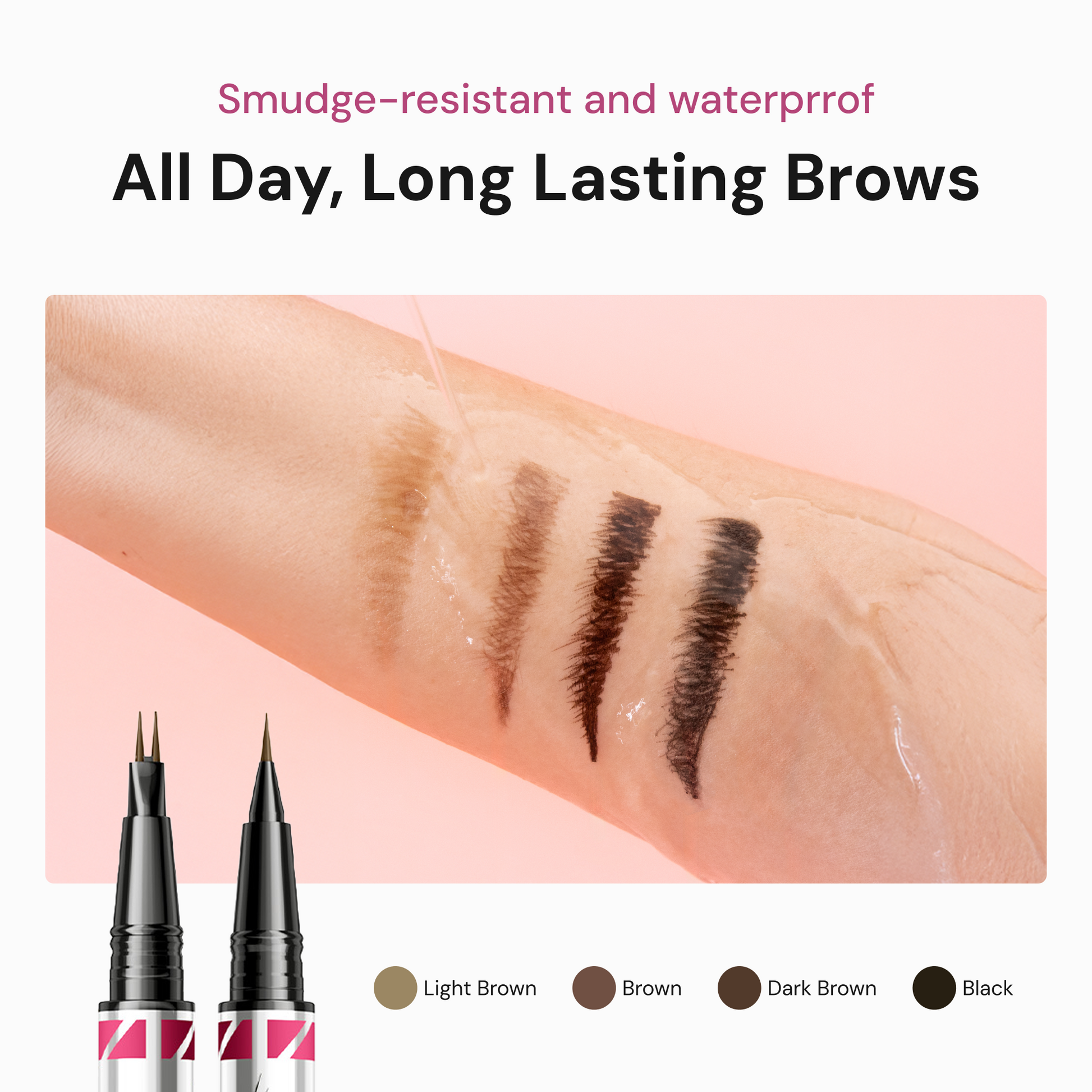 This fine tipped, 2-in-1 brow pen is waterproof, sweat-resistant, smudge-resistant and humidity-proof.