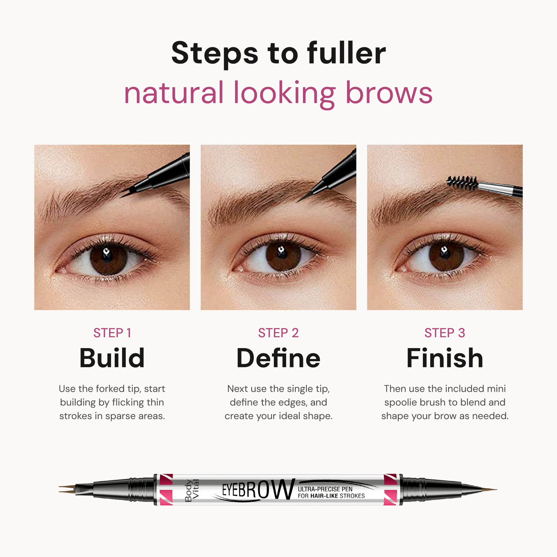 Note: Use the side with the double tip to fill sparse areas; and single tip to shape and perfect your new brows.